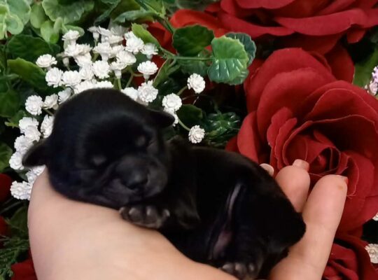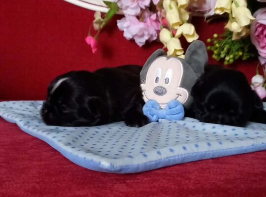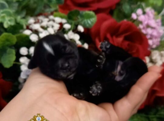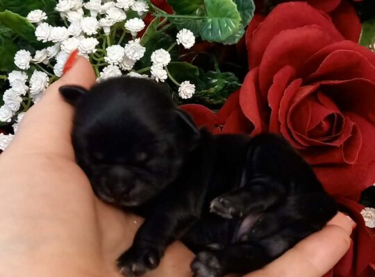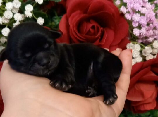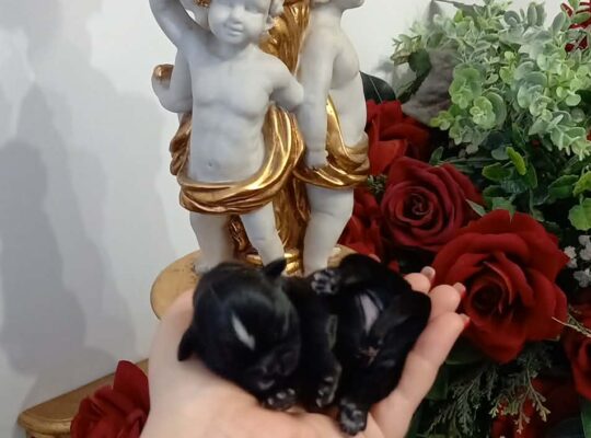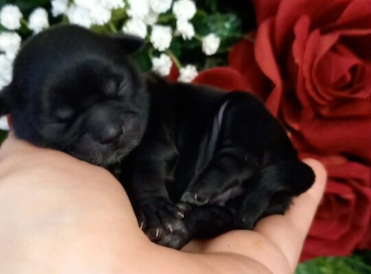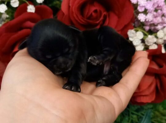 Przedstawiam sylwestrowe bobasy. Zdrowe pieski o czarnym umaszczeniu po drobnych rodzicach:
